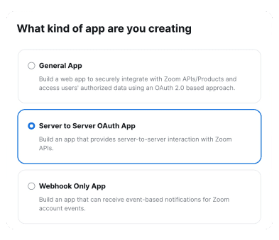 2. Selecteer Server-naar-Server OAuth als app-type en klik op “Maken”.
