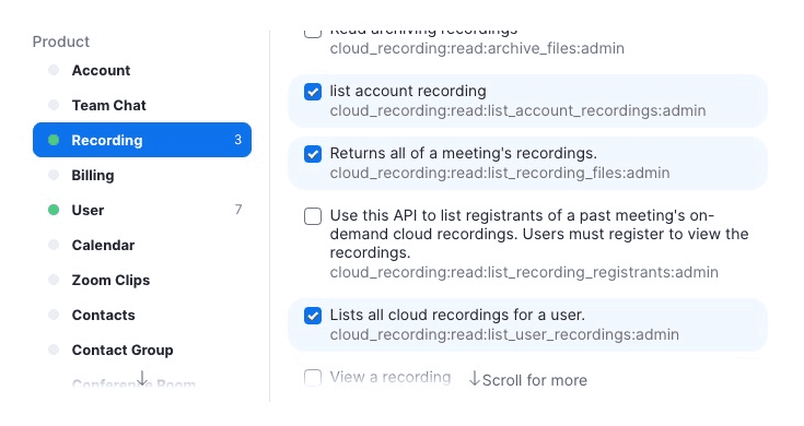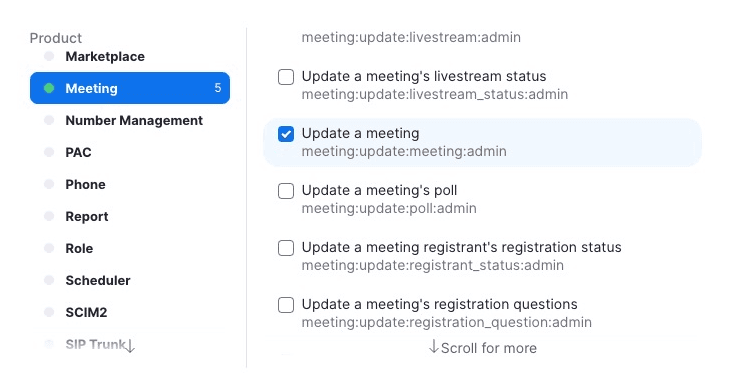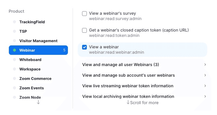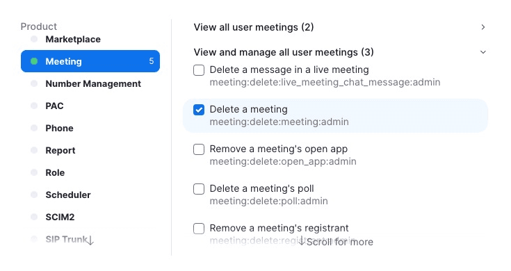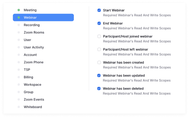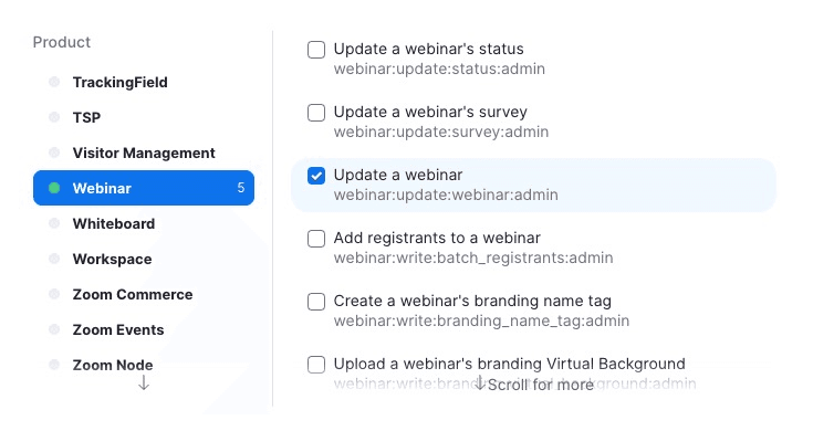 - Webinars: starten, beëindigen, bijwerken en verwijderen.